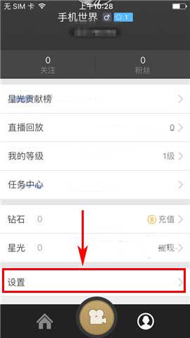 1)点开手印直播,进入箭头所指的选项,下来界面点击【设置】;(如下图)