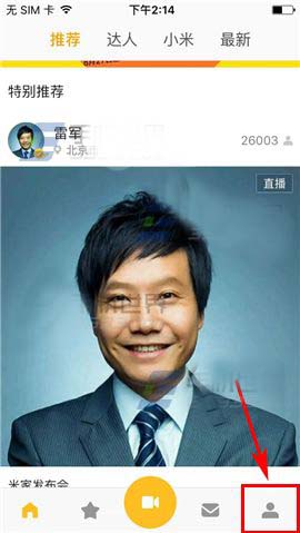 1)点开小米直播,首先点击屏幕右下角的【个人】图标,然后选择【粉丝】;(如下图)