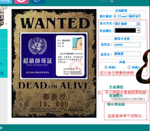 3.还有个好玩的就是生成,海贼王样式的通辑令,具体操作方法看下图。