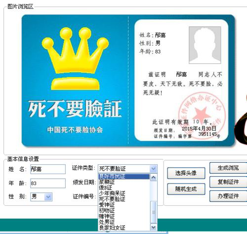 1.选择好你的头像,选好你要生成的证件,填好相应的填空,点击办理证件,秒秒钟你的证件就办好保存到桌面上啦 ~~~