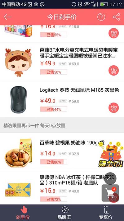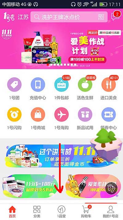 1、下载并打开1号店app,打开首页面,往下滑,找到“今日剁手价”活动,如下图所示。