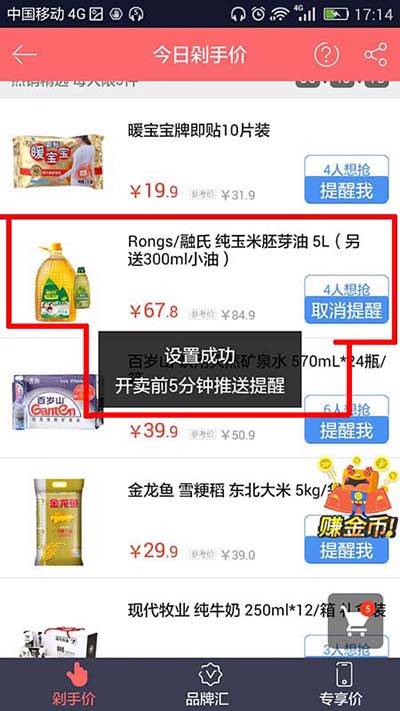 3、找到自己想要抢购的宝贝,点击”提醒我“,就设置好了,如下图所示。