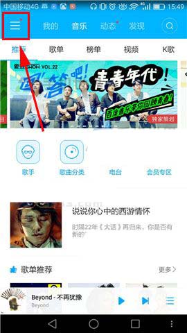 1)首先先打开【百度音乐】的界面,然后我们再点击左上角的【图标】,打开后接着点击【设置】。(如下图)