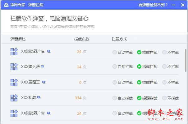 1. 净网专家分为两个主要功能,一个是软件弹窗拦截,另一个是捆绑安装拦截。