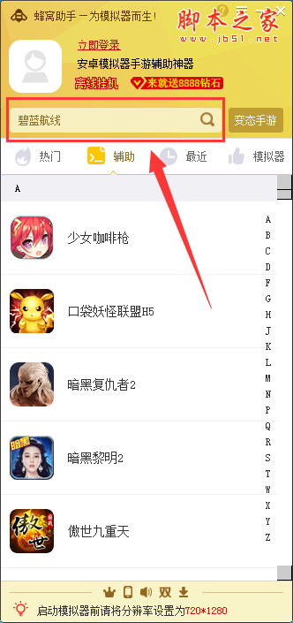 2、登录完毕后在蜂窝助手界面的搜索框中直接搜索想要开启辅助的游戏,如下图所示:
