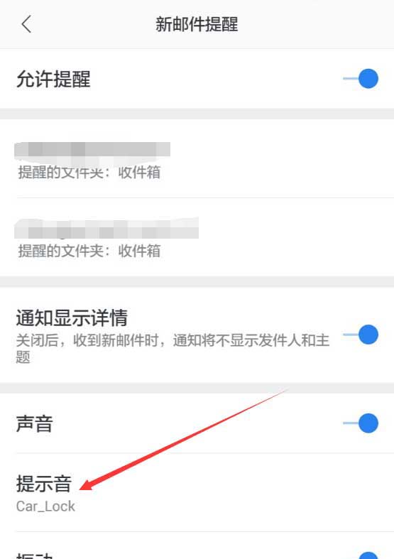 7、设置好后返回到新邮件提醒界面,在提示音那里可以看到设置好的提示音,如下图所示。