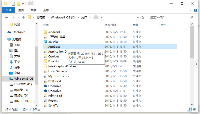 2,AppData这个文件默认是隐藏的,所以你需要在文件夹选项里点击查看,勾选显示 隐藏文件、文件夹,这样就可以看到AppData了!