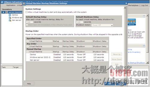下面就是每个虚拟机启动和关闭(或休眠)的间隔时间,还可以在下面的startup order里面改变各虚拟机启动的顺序。