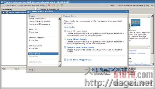 这步添加软驱,呵呵,软驱现在使用的可少了,所以第一个使用物理软驱估计没法用了,第二个是使用一个软盘映像,跟选择光盘映像类似,第三个是创建一个软盘映像,跟创建虚拟硬盘类似,不多说了,一般我们选择最后一个选项,不添加软驱设备,有时候做实验要用到软驱,根据需要是否添加吧。