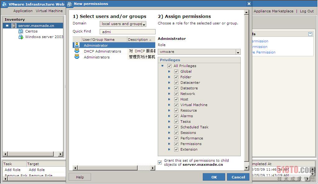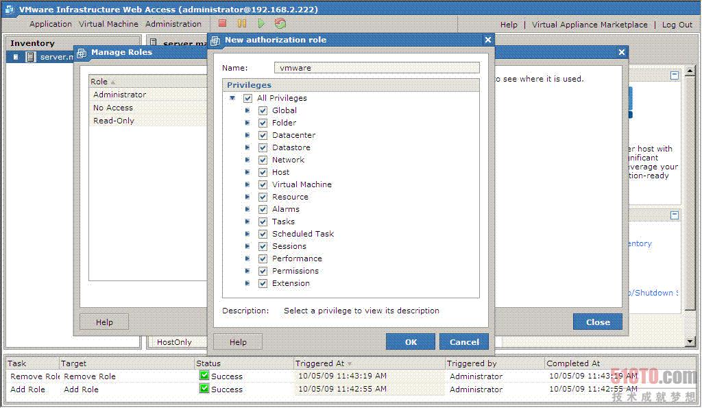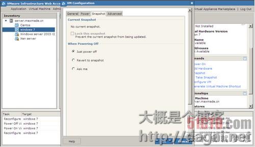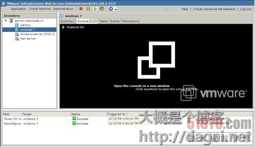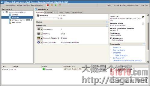 第三个任务,任何一个对VMware server的操作都是一个任务,都会在这里显示进度,进度100%就完成了。
