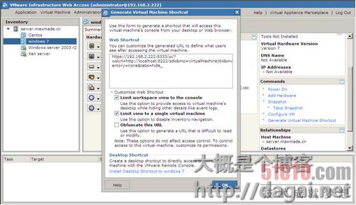 Desktop Shortcut to XXXXX创建一个桌面快捷方式,点了之后桌面就出现了一个链接到该虚拟机的图标了,点击那个图标试试看