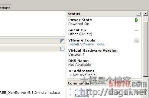 再看看右边,右边上面显示当前虚拟机的状态,下面依然显示的是commands,跟虚拟机总管界面的时候稍微有点不同,