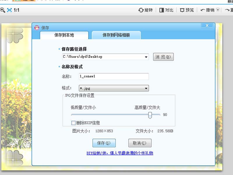 6、执行保存命令,设置保存格式为jpg,将文件保存在桌面上。