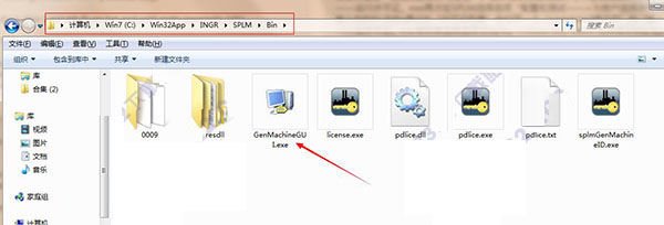 5、打开许可安装的目录,默认为:C:\Win32App\INGR\SPLM\Bin,双击运行里面的“GenMachineGUI.exe”,然后它会有一个提示,点击“是”,输出计算机信息。