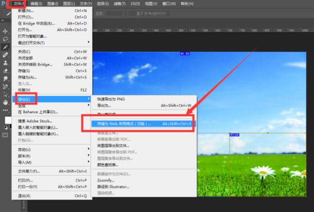 然后点击菜单栏的文件——导出——存储为web所用格式,将图片保存,