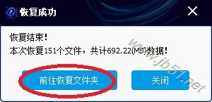 8、恢复完成,弹出提示信息。点“前往恢复文件夹”,可以到恢复文件夹看刚才恢复的文件。