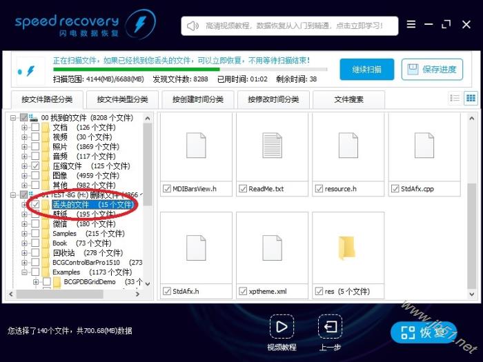 10、如果在原始目录里没有找到您删除的文件,请在“丢失的文件”目录里面找。 有些文件删除后,如果找不到原始父目录,就会放在“丢失的文件”目录里面。