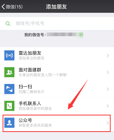 2、选择“公众号”;