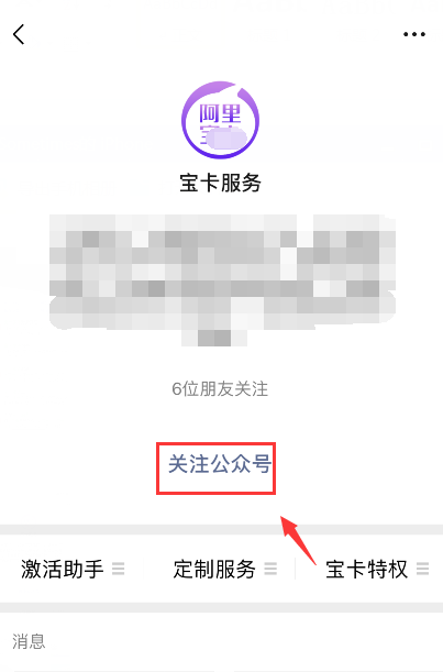 4、进入“宝卡助手”公众号,点击“关注公众号”