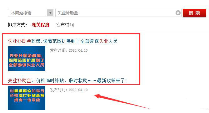 3、点击搜索结果中的【失业补助金最新政策】查看。