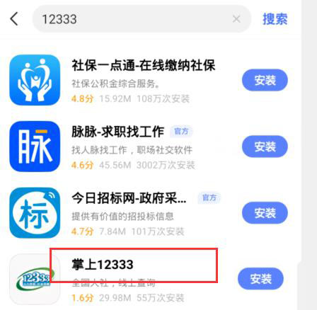 1、应用商店搜索【掌上12333】然后下载安装。
