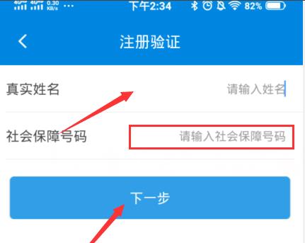 3、进行注册输入【真实姓名】和【身份证】点击【下一步】。