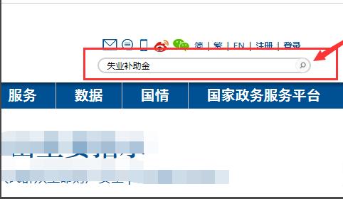 2、在政府网站右上角输入【失业补助金】点击搜索。