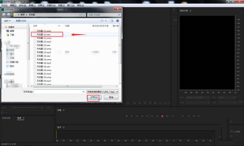 2、在弹出的导入文件窗口中,选择需要的音频素材文件,然后点击打开。