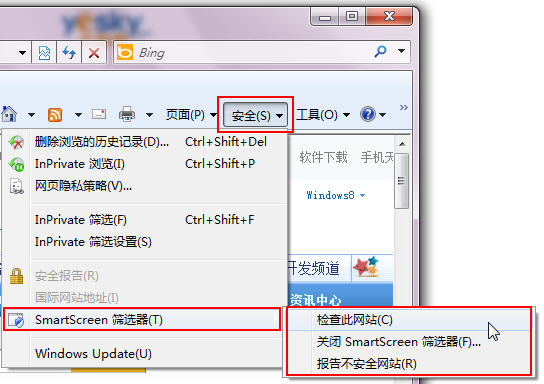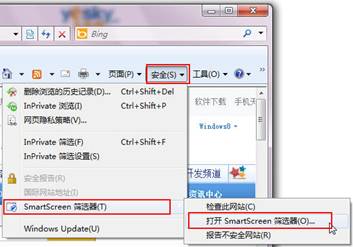 用IE浏览器的SmartScreen 筛选器报告危险网站