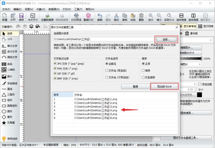 5、保存完成后,神奇条码标签打印系统提示导出成功,点击确定即可。将导出的excel表格打开,将文件名的内容拷贝到员工信息表格中,