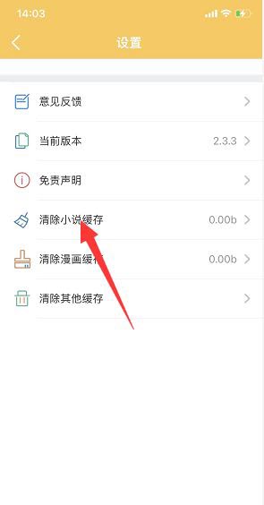 2、在设置页面里打开找到清除小说缓存