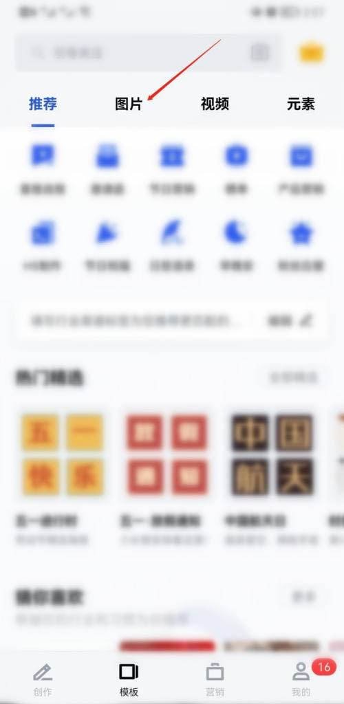 1、打开稿定设计,进入模板分类,找到上方的图片选项。