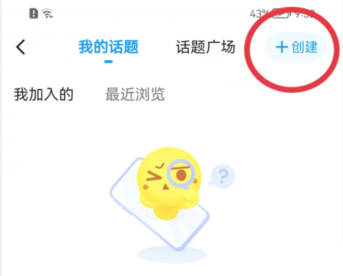 3、进入【我的话题】页面后,点击【+创建】。