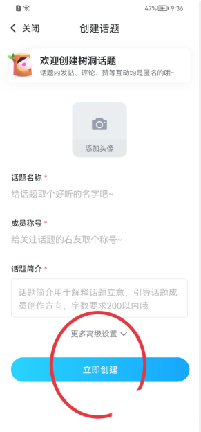 5、输入创建话题的内容后,点击【立即创建】按钮,即可成功创建话题。