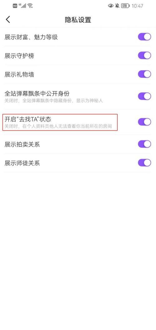 最后打开【开启“去找ta”状态】后侧的开关即可完成操作