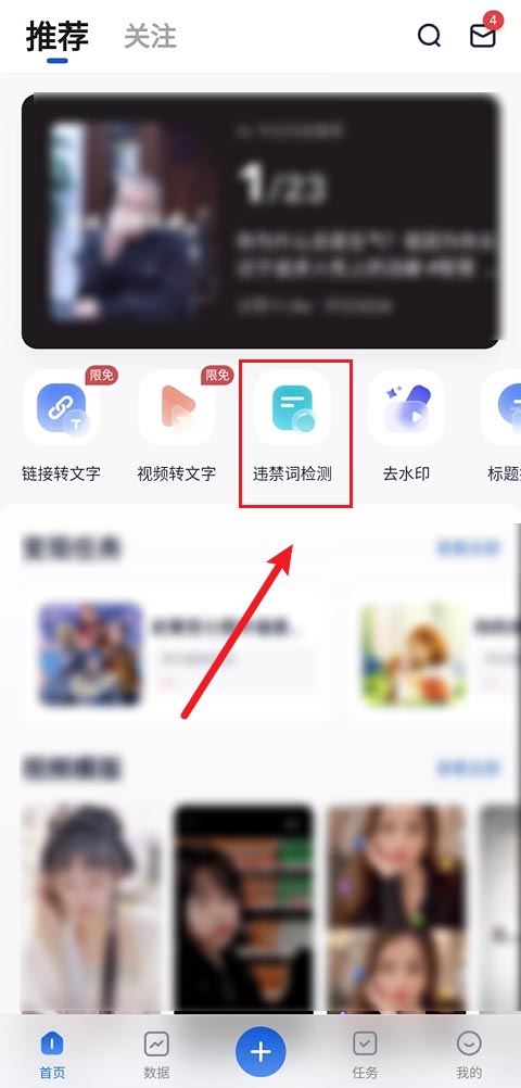 打开创作猫后选择点击【违禁词检测】选项按钮(如图所示)