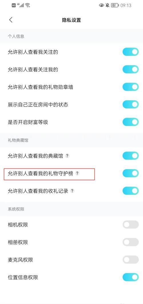 最后点击打开【允许别人查看我的礼物守护榜】即可完成操作