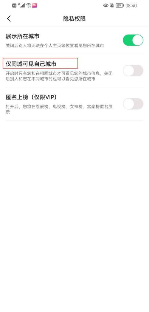 最后点击打开【仅同城可见自己城市】即可完成操作