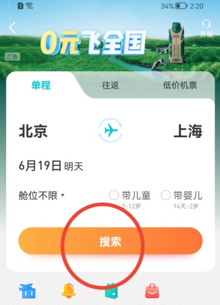 在软件首页,点击【机票】按钮。