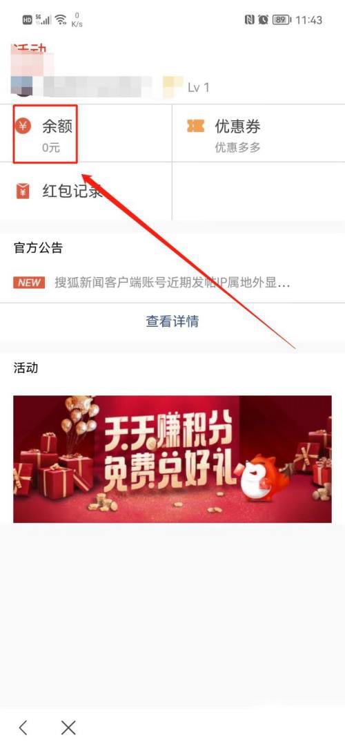 搜狐新闻查看余额的方法