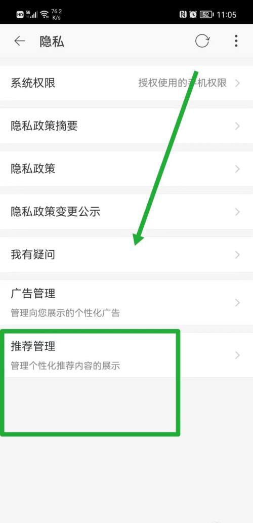 第四步:点击【推荐管理】,再点击【个性化内容推荐】后的绿色按钮即可,详见下图所示。