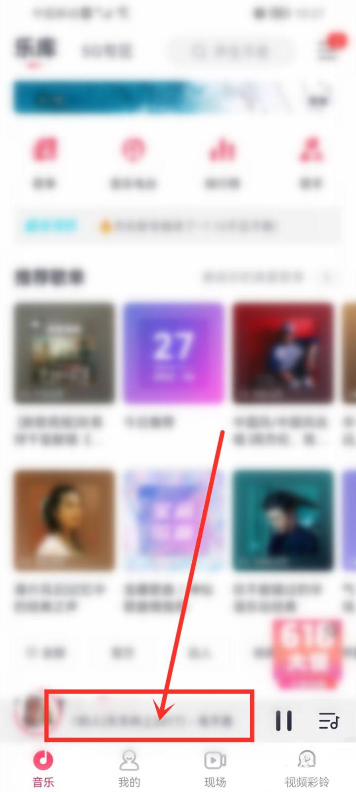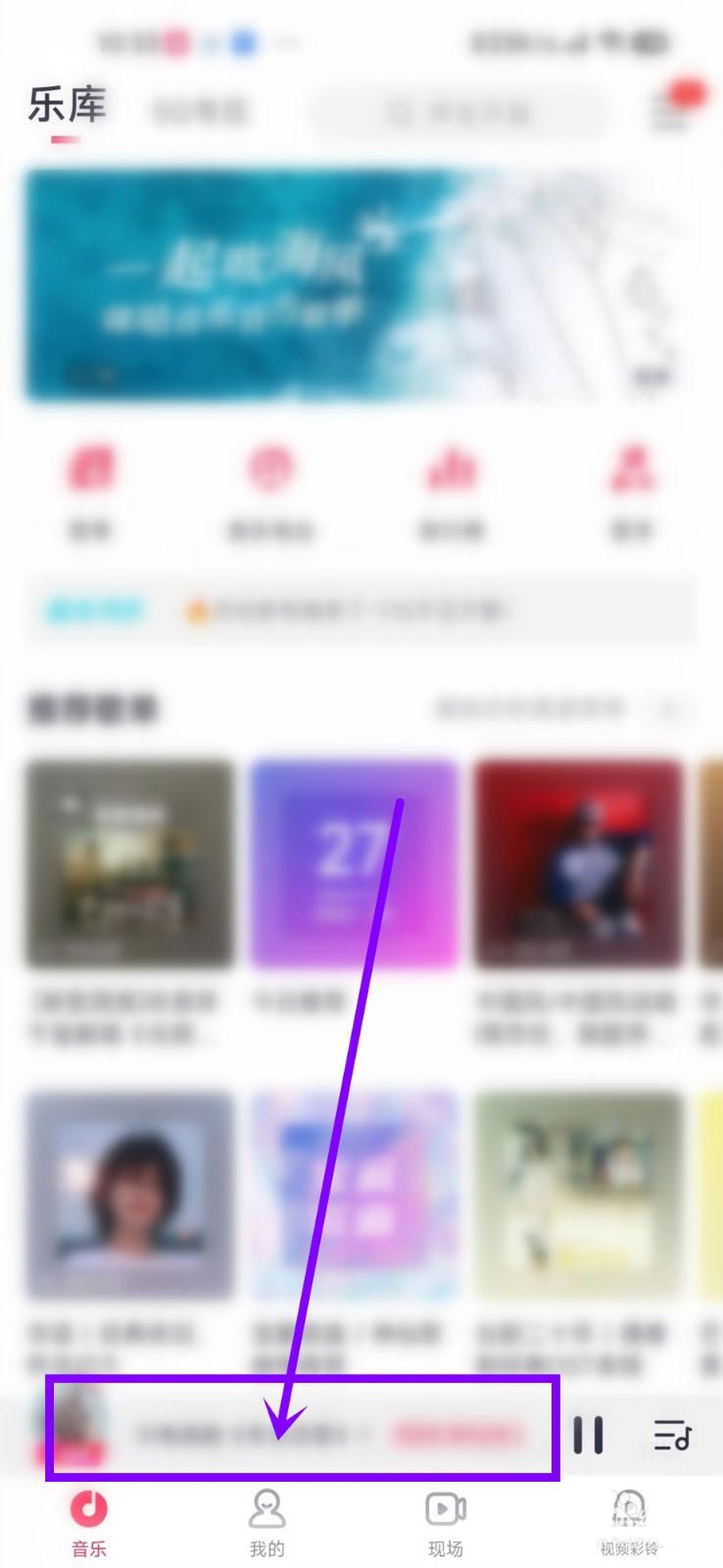打开咪咕音乐App首页,点击页面底部“播放器”控制条。