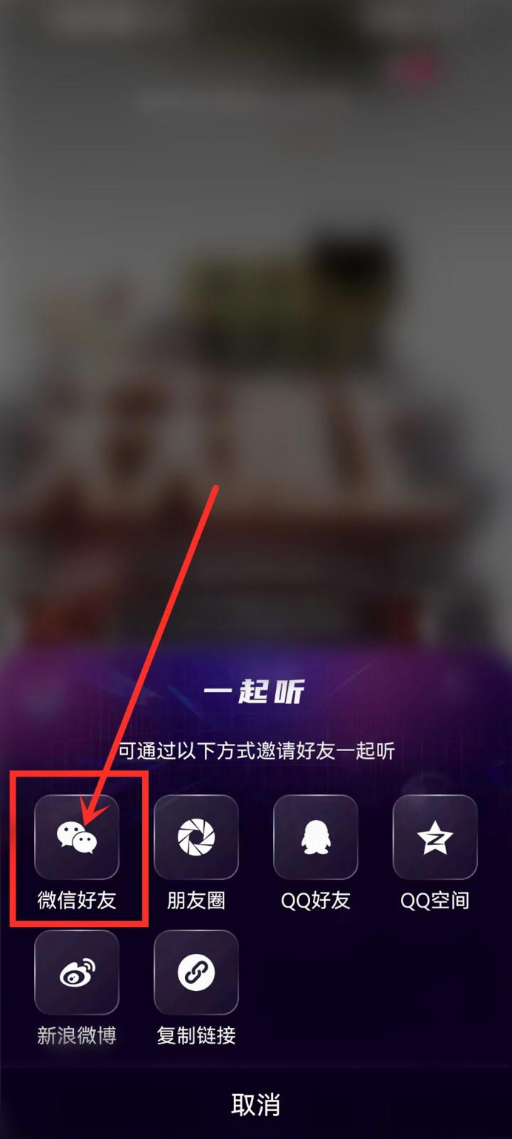 进入一起听窗口,在邀请方式中选择“微信好友”。