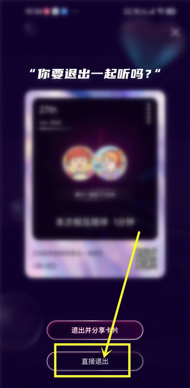 在弹出的窗口中选择“直接退出”,即可退出一起听。