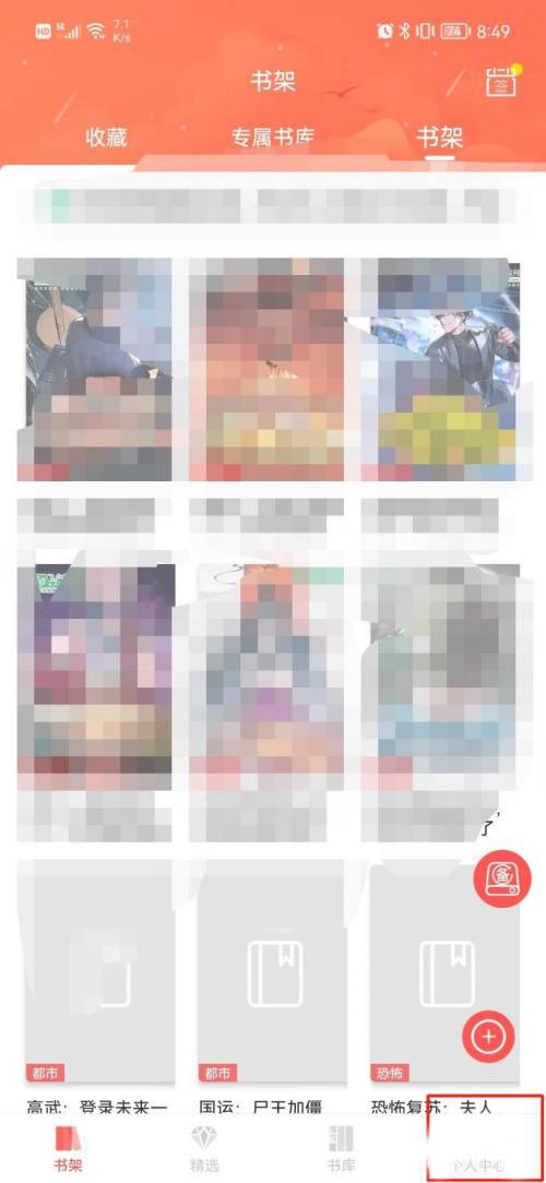 第一步:进入【飞卢小说】APP首页,点击右下角【个人中心】,详见下图所示;