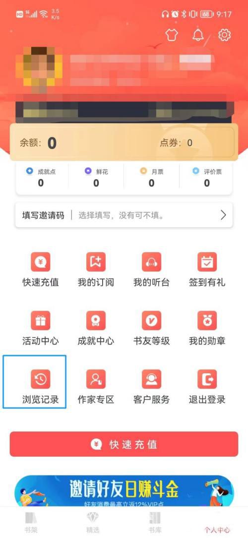 飞卢小说查看浏览记录的方法