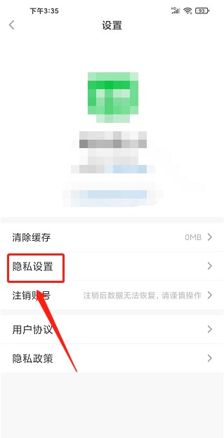进入设置界面,点击【隐私设置】。