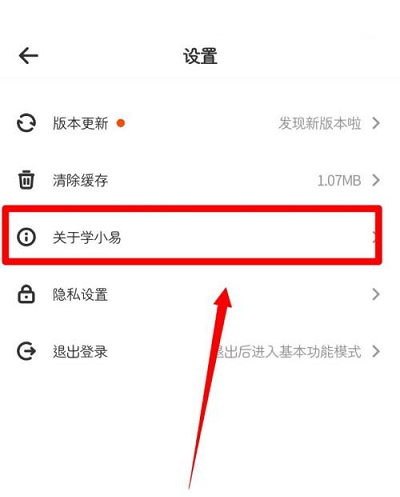 第三步:直接在设置界面中点击关于学小易(如图所示)。