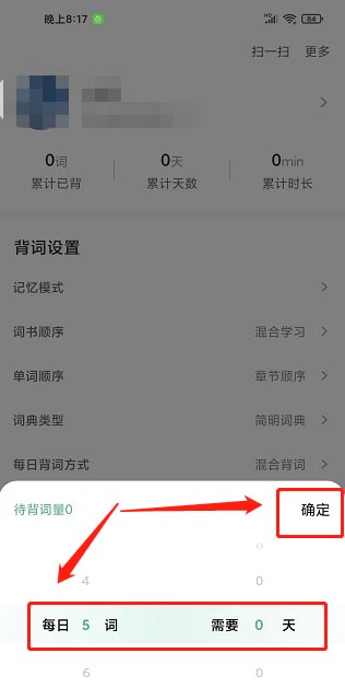 小吉背单词设置每日新学词量的方法