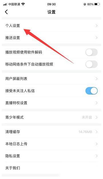 接下来,点击界面顶部的“个人设置”选项